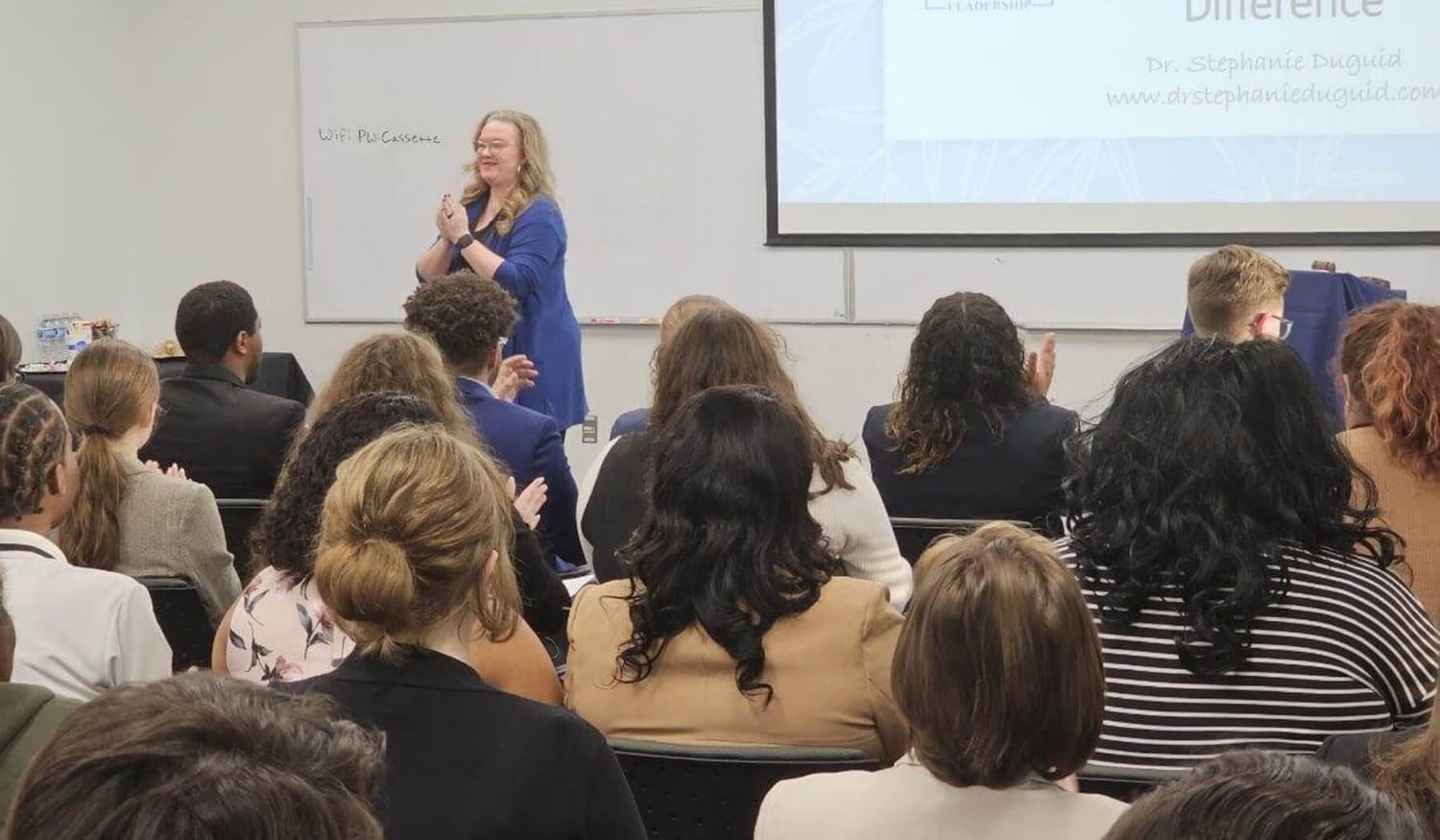 Dr. Stephanie Duguid grew up watching her mother transform lives through genuine connection. As a Welcome Wagon woman and forty-year educator in Sugar Land, Texas, her mother taught Stephanie that leadership begins with truly seeing people and meeting them where they are. During childhood, she spent weekends accompanying her mother to Welcome Wagon greetings and in her classrooms, observing how genuine communication builds lasting relationships. At the same time, Stephanie learned mental resilience by excelling as a competitive athlete in multiple sports throughout high school and college. After earning degrees in Human Performance and Sports Healthcare, she worked as an athletic trainer before transitioning into education, fulfilling a generational tradition.